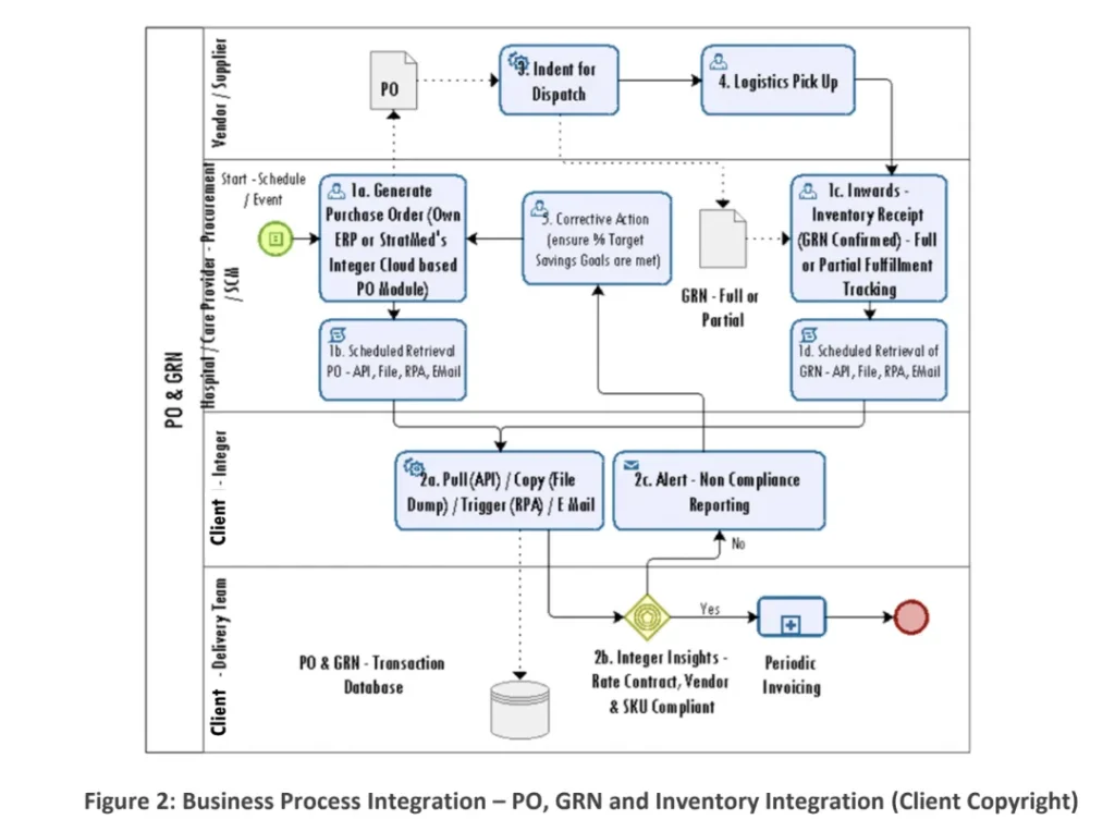 - Hospitals / Healthcare Providers – for transactional data including integration with the OT and OP / Billing Systems for indent to consumption tracking, and with the Procurement / Supply Chain / Inventory Systems for Reorder Level Alerts, Compliance to cost improvements / replacements and rate contracts